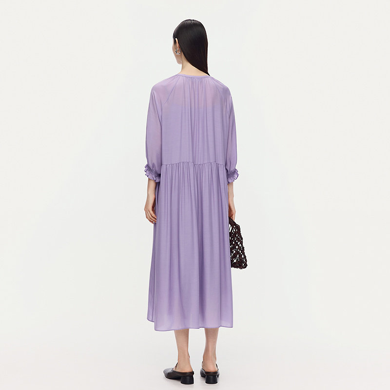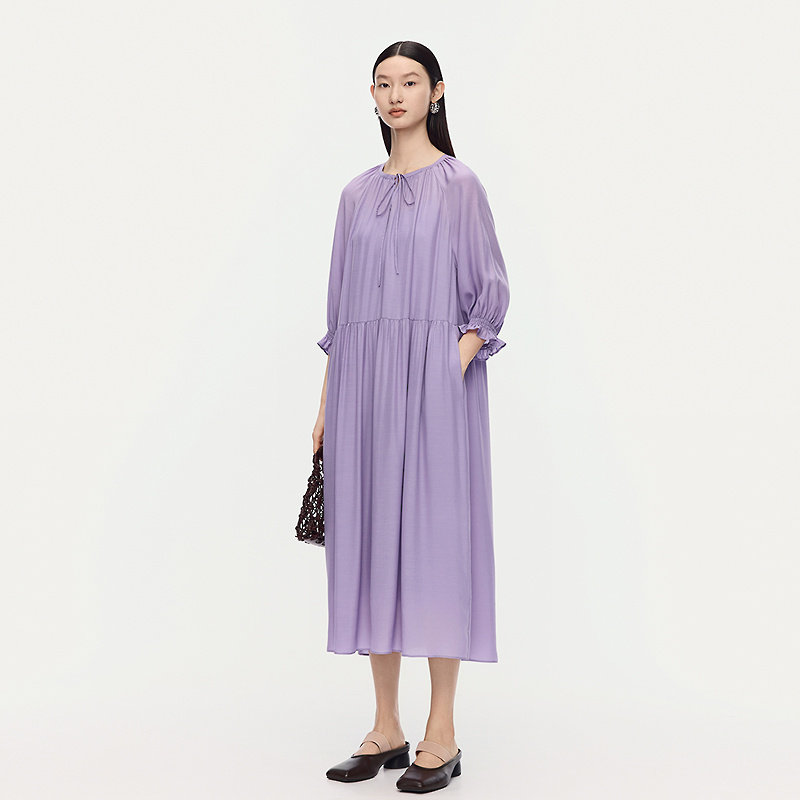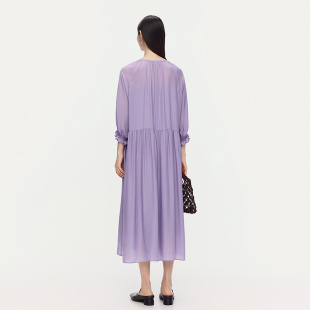 圆领系带直身分割连衣裙长裙 AUM噢姆夏季 商场同款