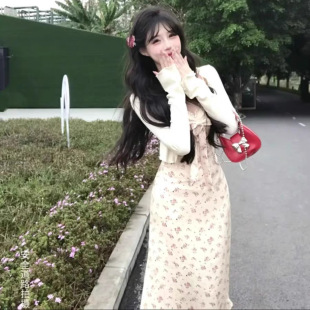 夏季 碎花吊带连衣裙套装 甜美防晒长袖 显瘦收腰修身 开衫 雾漫花海