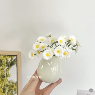复古绿萝花瓶陶瓷小水养插花器客厅书房办公桌新中式 饰品 禅意软装