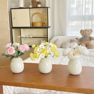 HANICE北欧ins莫兰迪花瓶简约陶瓷褶皱插花花器玄关餐桌装 饰摆件