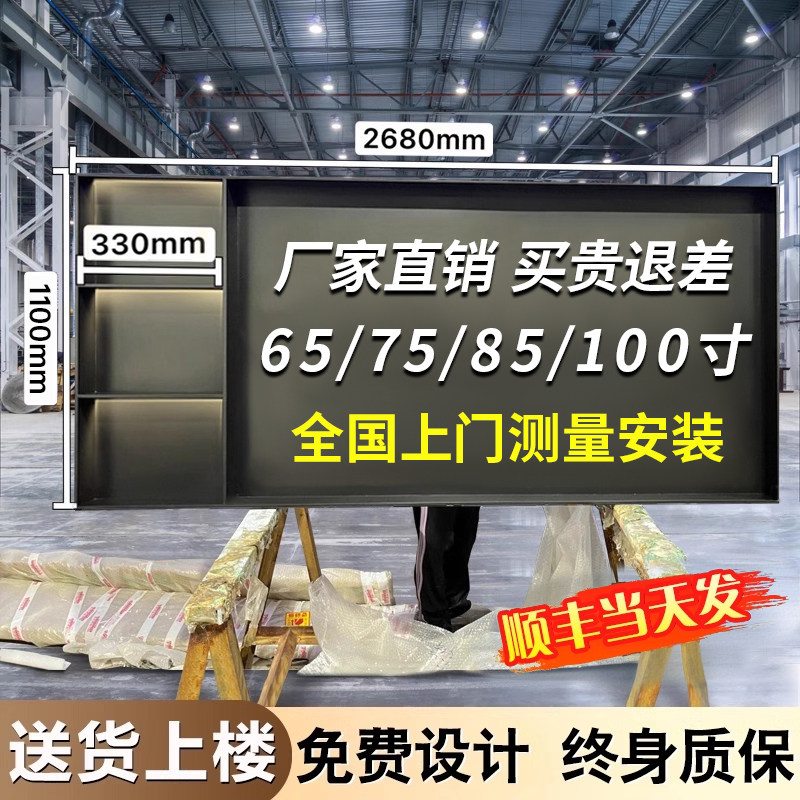 饰边框 85寸电视机背景墙壁金属柜定制装 不锈钢电视壁龛嵌入式