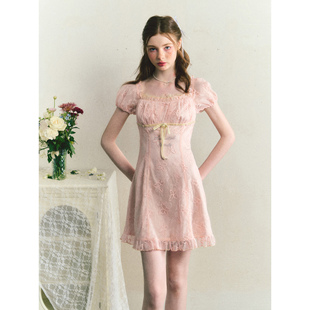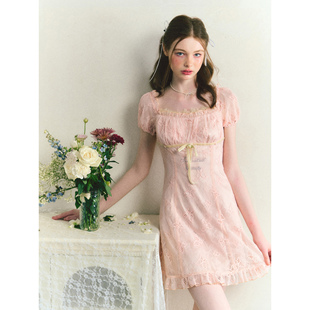 蝴蝶蕾丝方领修身 裙夏秋款 连衣裙短裙 新中式 SunsetPark日落公园