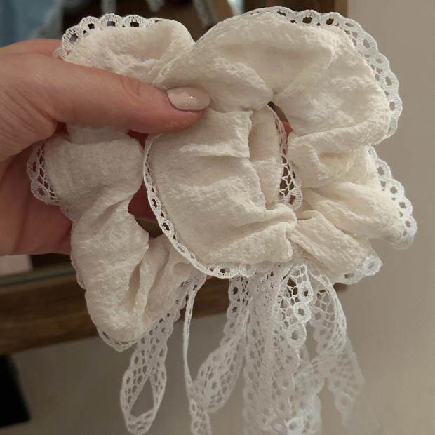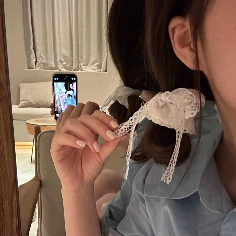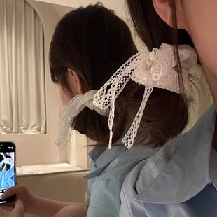 微甜氛围 韩系温柔蝴蝶结大肠发圈女高级感粉色丝带蕾丝飘带发绳