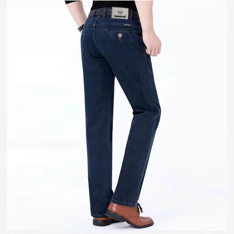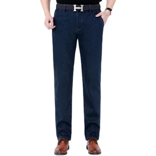 秋冬中老年高腰深裆宽松直筒中年斜口袋父亲厚款 苹果牛仔裤 男正品