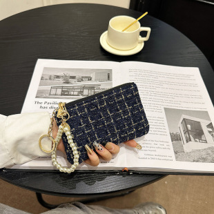 钱包女短款 小香风拉链零钱袋帆布编织卡夹精致驾驶证件钥匙手拿包