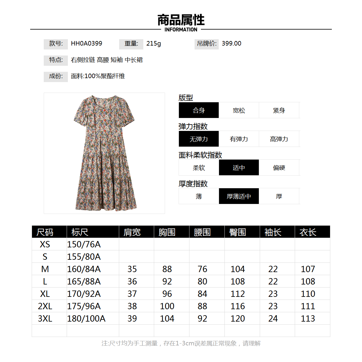 潮款 奥特莱斯品牌折扣 温柔风碎花修身 2024新款 裙子连衣裙 HH夏装