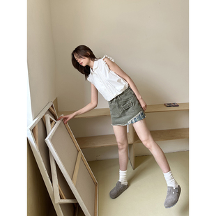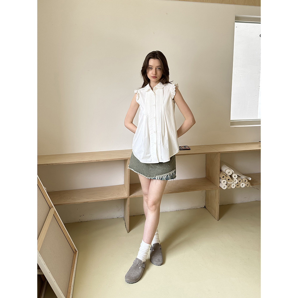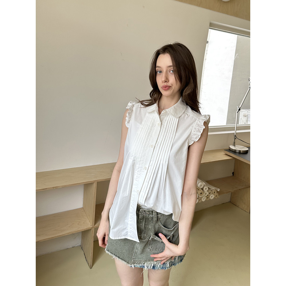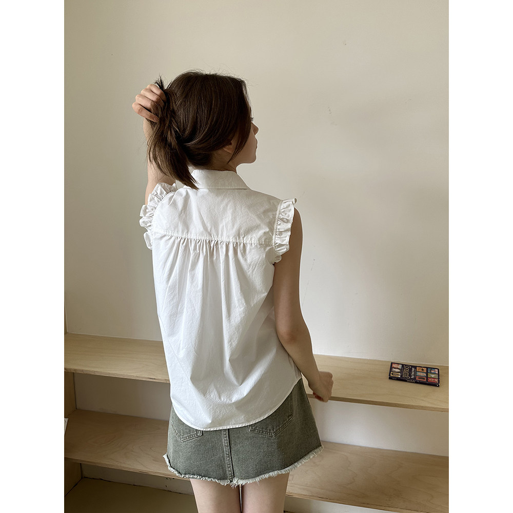 气质内搭女叠穿背心打底百搭 衬衫 法式 V领木耳花边丝滑缎面无袖