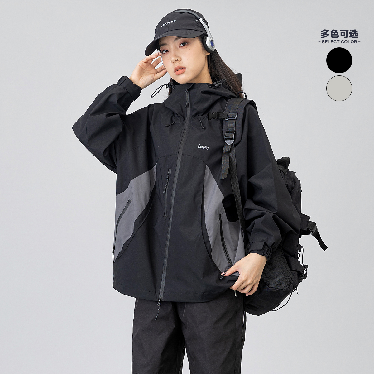 情侣装 MANNSTU 男女同款 日系复古宽松连帽冲锋上衣夹克 外套 春季