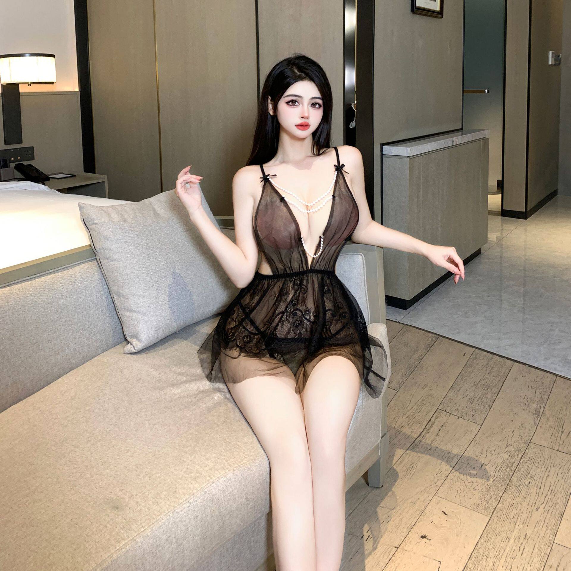 1725潮尚夜总会性感内衣珍珠纯欲诱惑网纱睡衣床上透视装 连衣裙