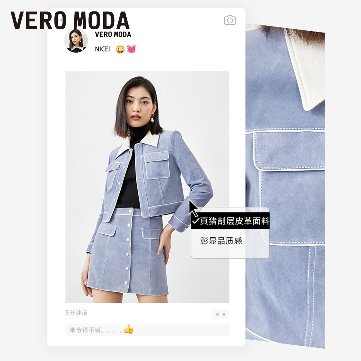 Vero 清仓高腰A摆气质优雅通勤皮裙短裙女流行 Moda奥莱半身裙春季