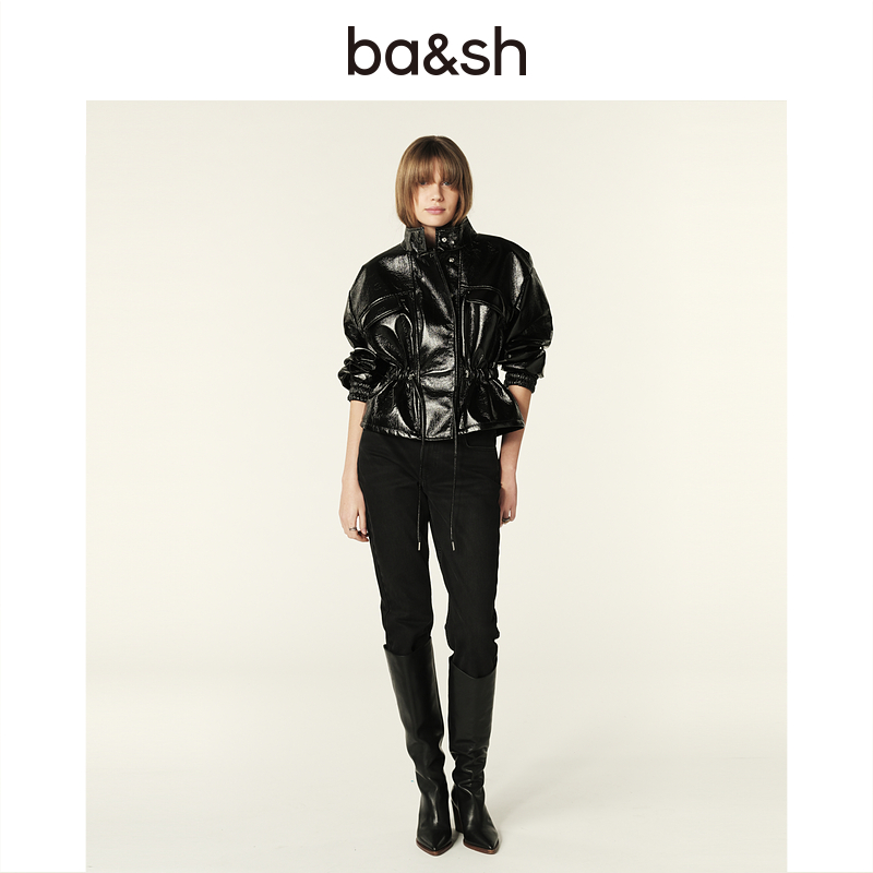 bash秋冬机能风复古亮面半高领法式 穿搭抽绳短外套上衣1E24MALO