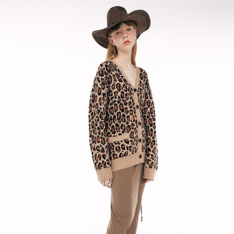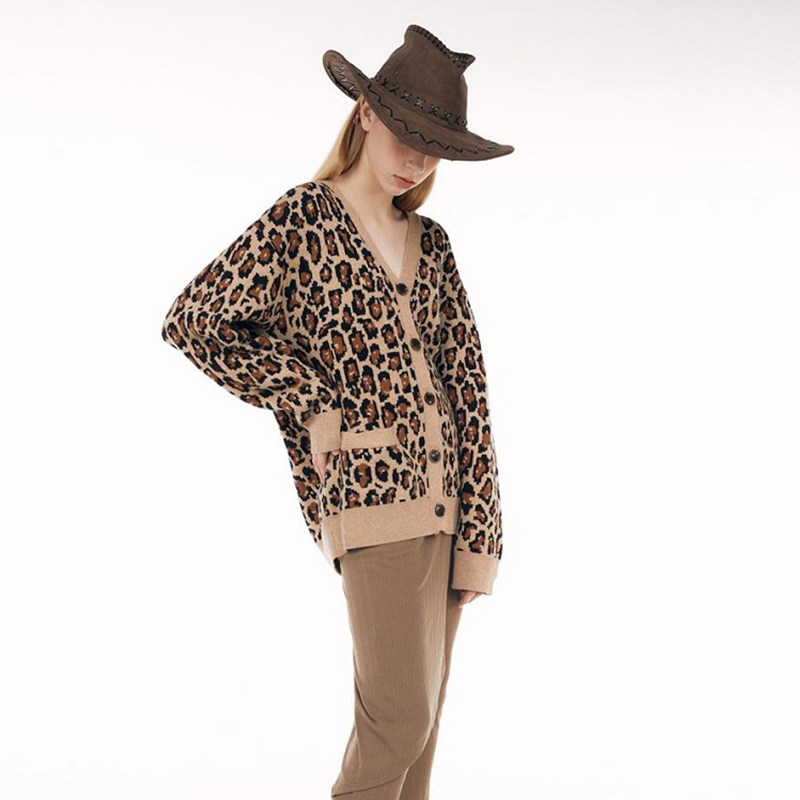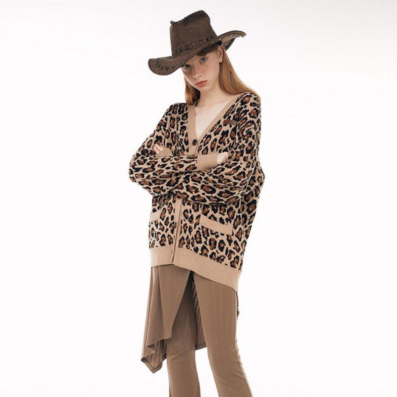 SCULPTOR金珍妮豹纹羊绒针织开衫 上衣外套毛衣秋冬