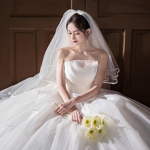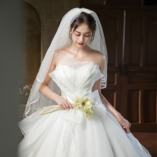 婚纱2025新款 在逃公主轻纱抹胸简约缎面小个子出门纱 新娘主纱法式