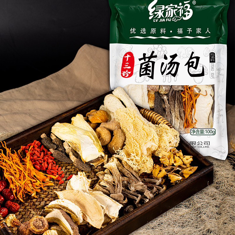 绿家福十三珍菌汤包100g 香菇小鸡汤类调料清炖冬阴功汤料 袋