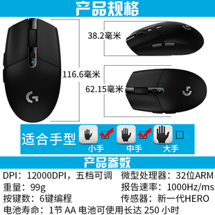罗技G304无线鼠标电竞游戏办公USB接收器电脑笔记本通用拆包可保