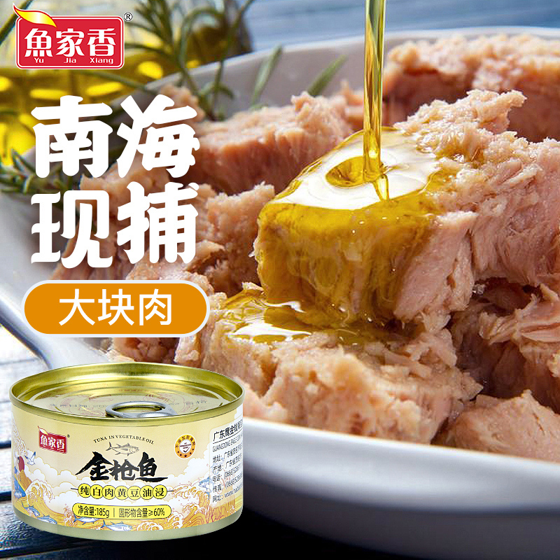 鱼家香金枪鱼罐头黄豆油浸纯白肉185g 4罐即食沙拉寿司鱼肉吞拿鱼