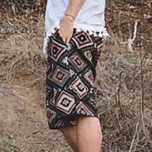 五分短裤 提花几何图案潮牌中国风休闲个性 男陈冠希同款 三溪铺短裤