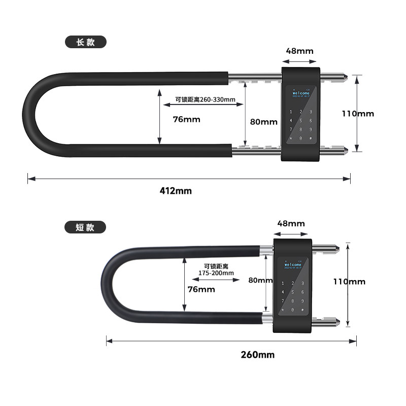 密码 u型锁玻璃门指纹锁双门商铺店面大门U型插锁电子挂锁智能门锁