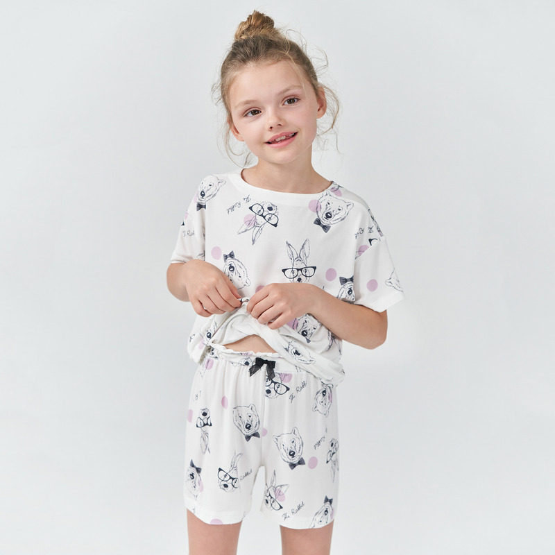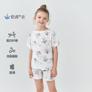 套装 睡衣睡裤 奶皮衣 短裤 爱慕儿童家居服凉感3A抗菌A类女孩夏短袖