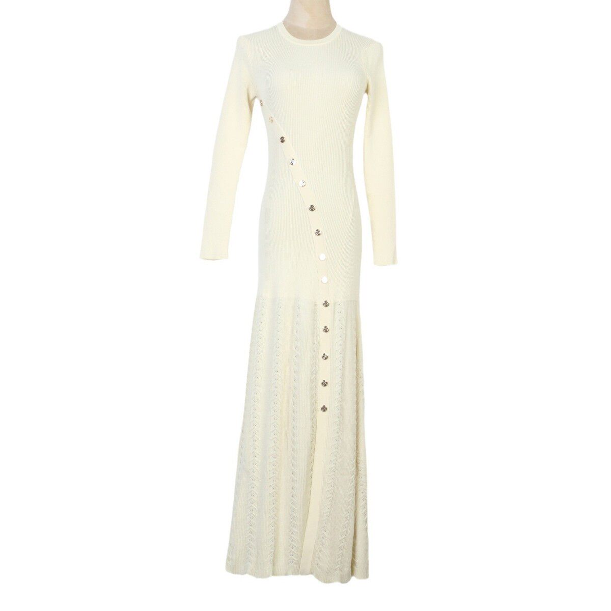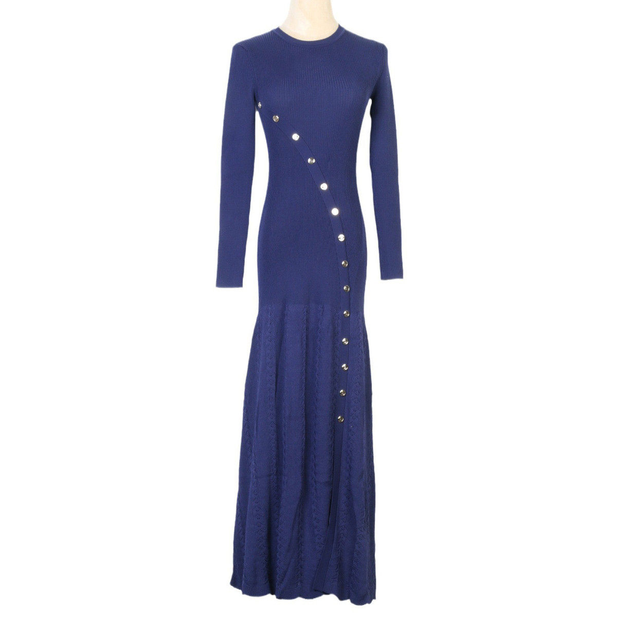 法式 连衣裙包臀鱼尾裙女 小众连衣裙女2024春秋斜扣圆领收腰针织衫