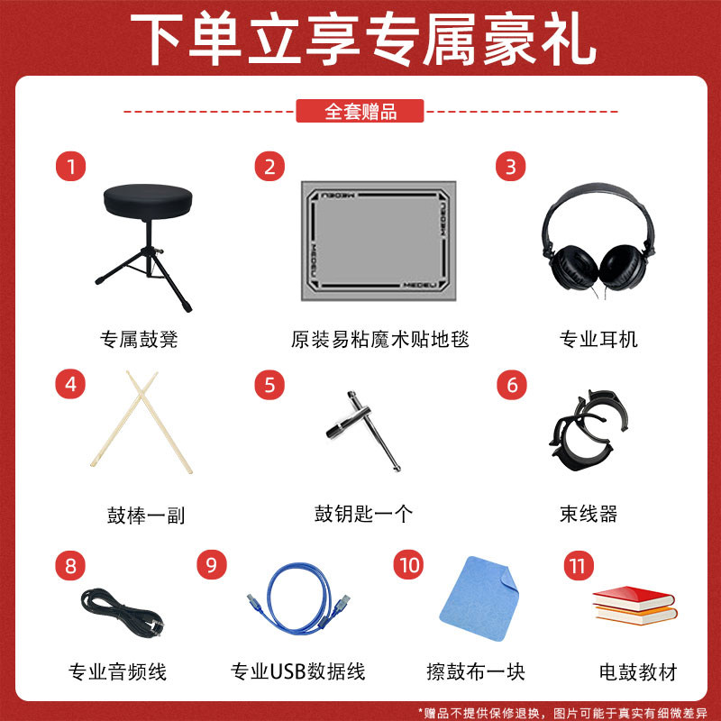 美得理 专业高端舞台演出架子鼓网面木腔 MZ729旗舰电子鼓