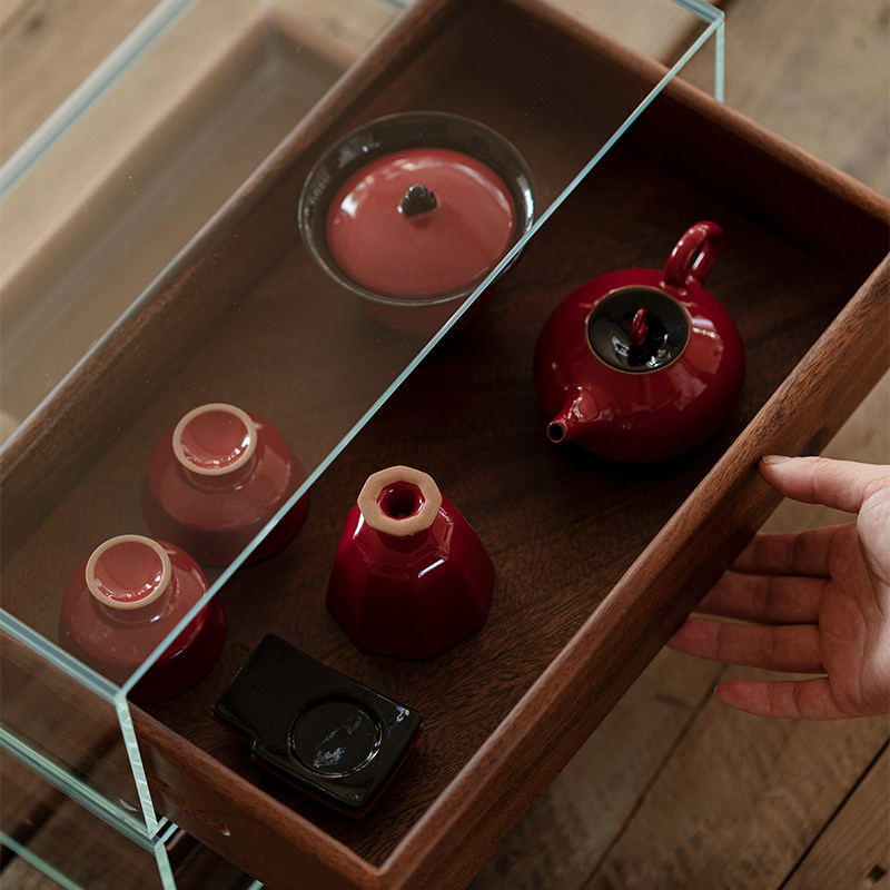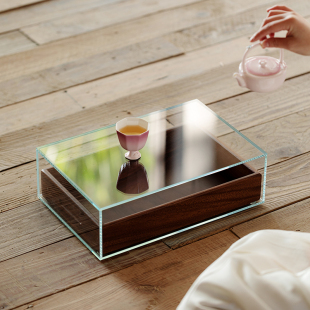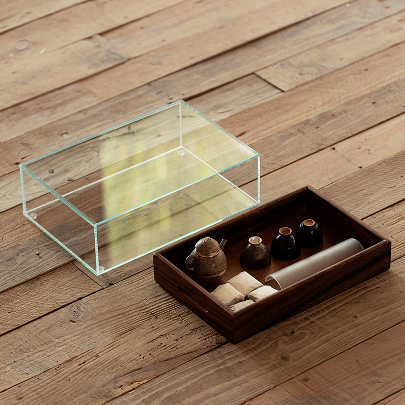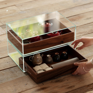 里作黑胡桃木桌边玻璃牙科柜茶具茶杯收纳盒柜透明文玩饰品展示柜