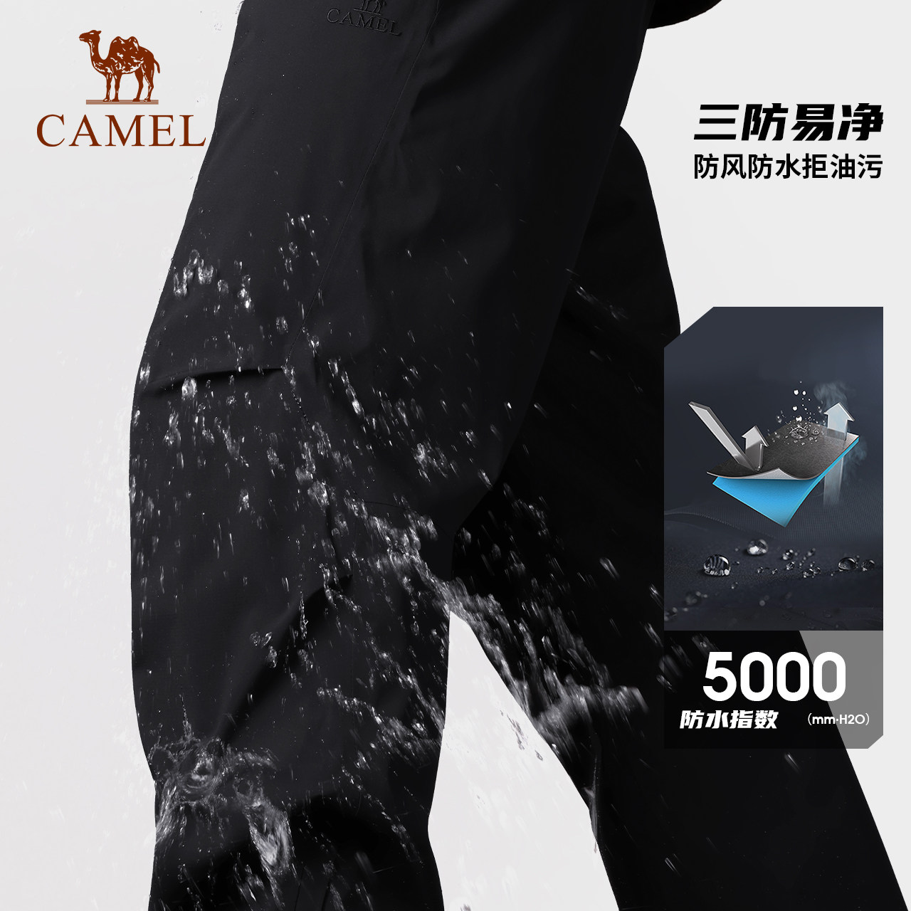 加绒保暖冲锋裤 王者凯甲三防束脚休闲裤 骆驼男装 男 王俊凯同款