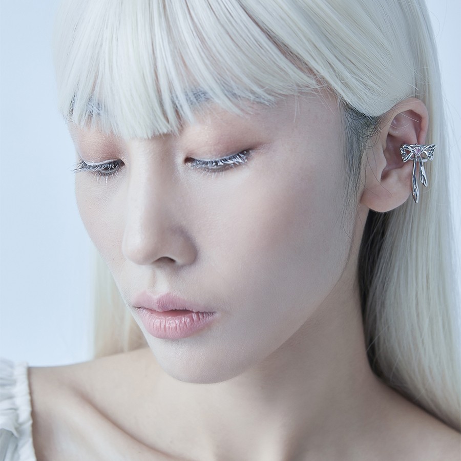 原创设计蝴蝶结耳环液体金属风耳夹不对称耳饰小众设计耳钉无耳洞