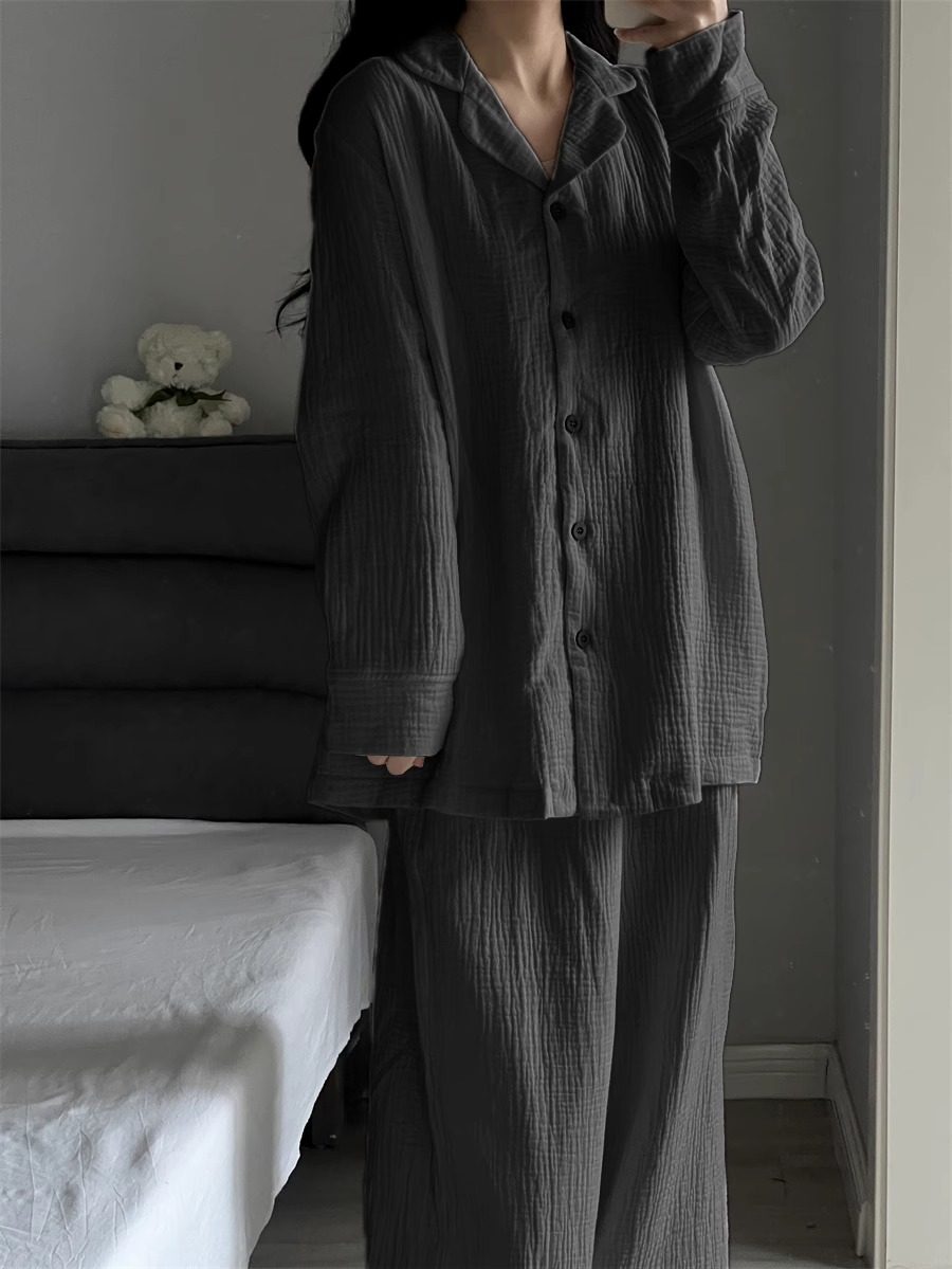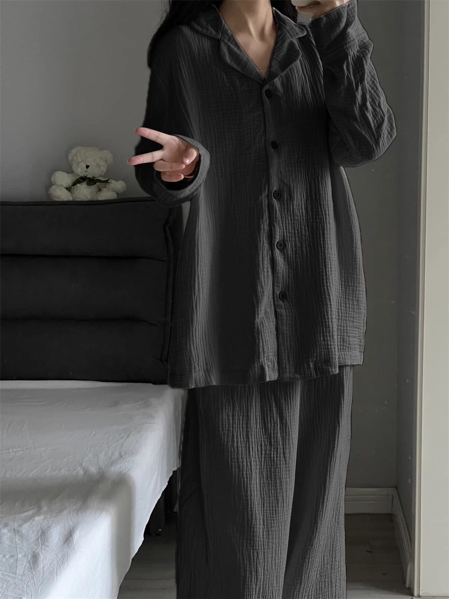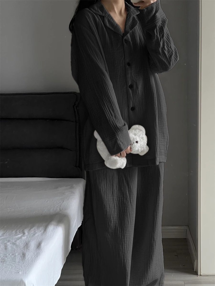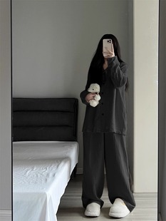 长袖 全棉大码 套装 女款 家居服 简约休闲秋季 芬腾春秋睡衣女纯棉开衫