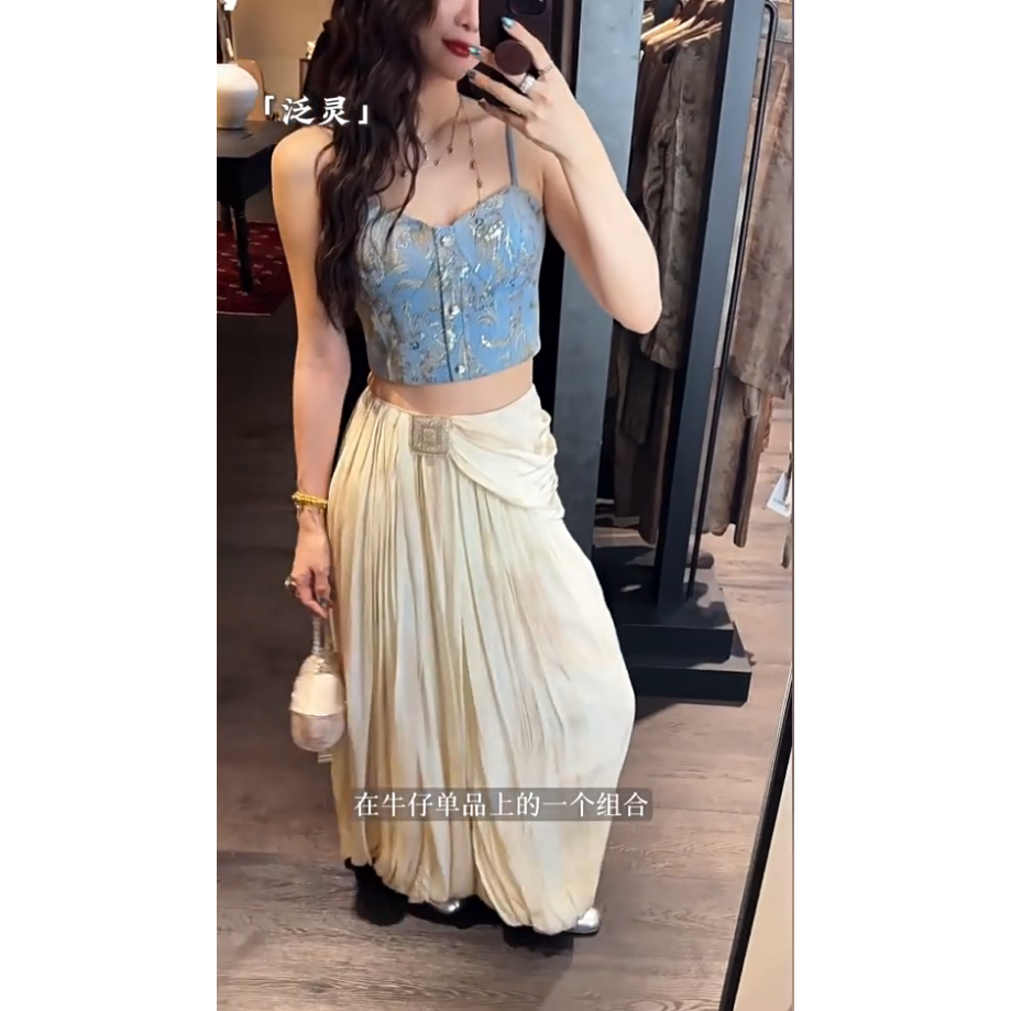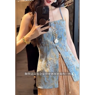 无袖 三吉同款 牛仔吊带背心女夏外穿2025新款 新中式 上衣 泛灵