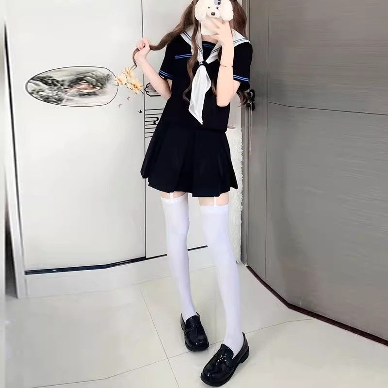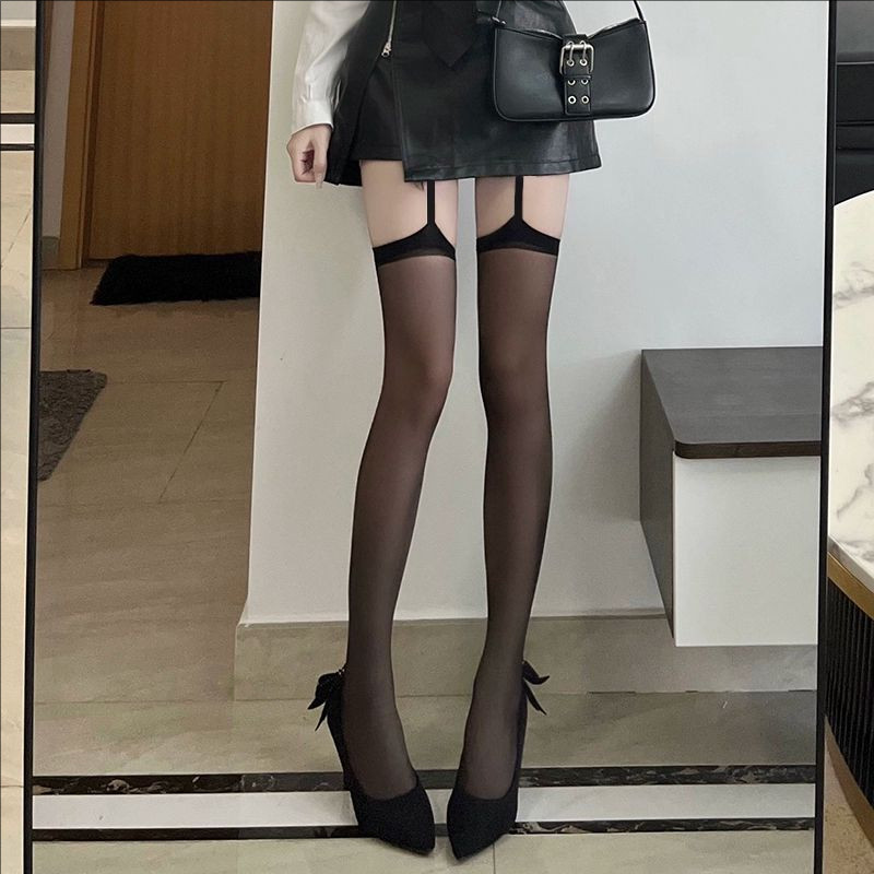 黑色吊带袜女仆y2k辣妹天鹅绒jk黑丝过膝袜子性感长筒大腿白丝袜
