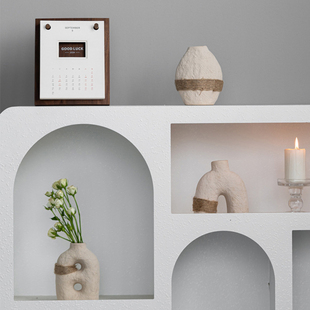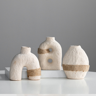 黑白素烧陶瓷花瓶摆件现代简约样板间售楼部别墅软装 饰品不规则