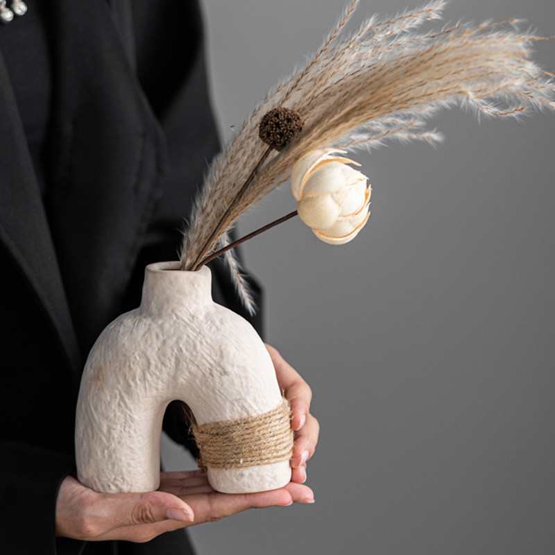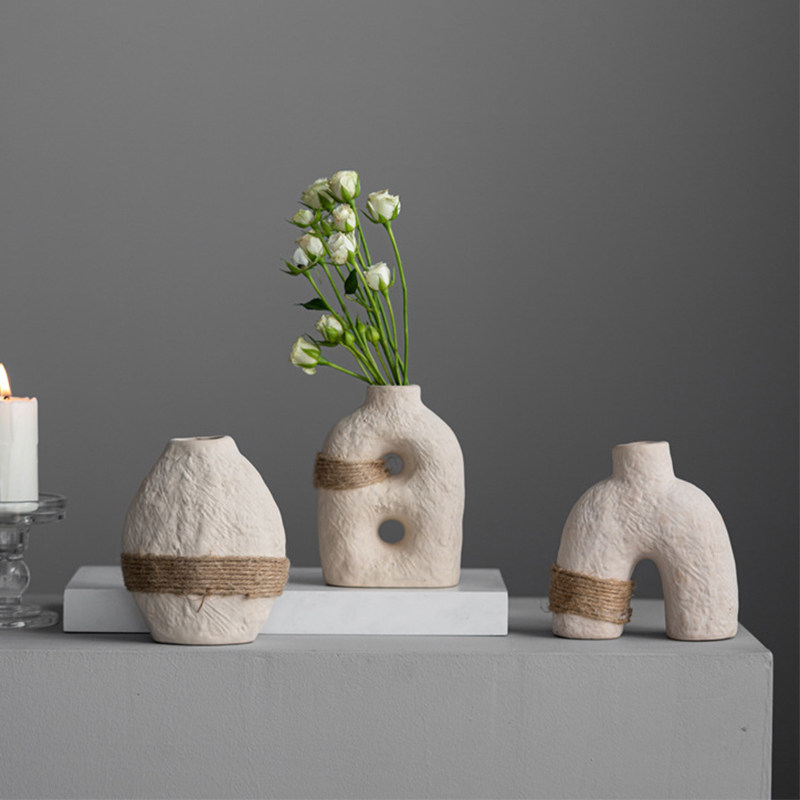 莫兰迪色彩陶瓷花瓶插花干花摆件北欧客厅装 饰轻奢磨砂亚光设计师