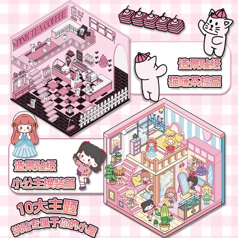 微缩场景贴纸合集本套装 造景3D立体视觉小屋女孩儿童益智