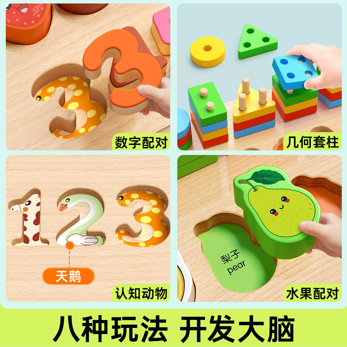蒙氏聪明板拼图积木0到3岁益智力开发动脑男孩女早教儿童拼装 玩具