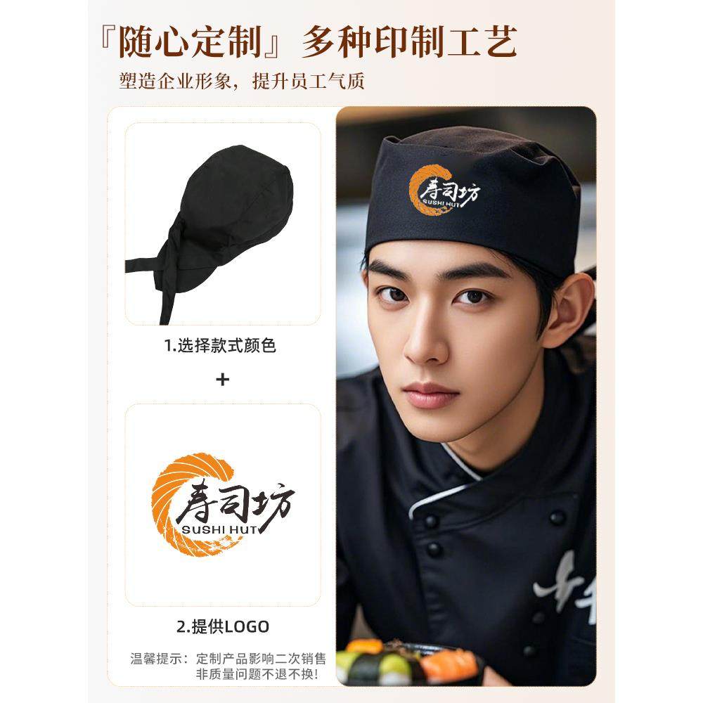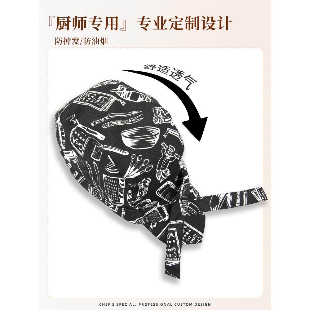 日式 厨师帽子餐饮专用防油烟炒菜做饭厨房工作头巾海盗帽男服务员