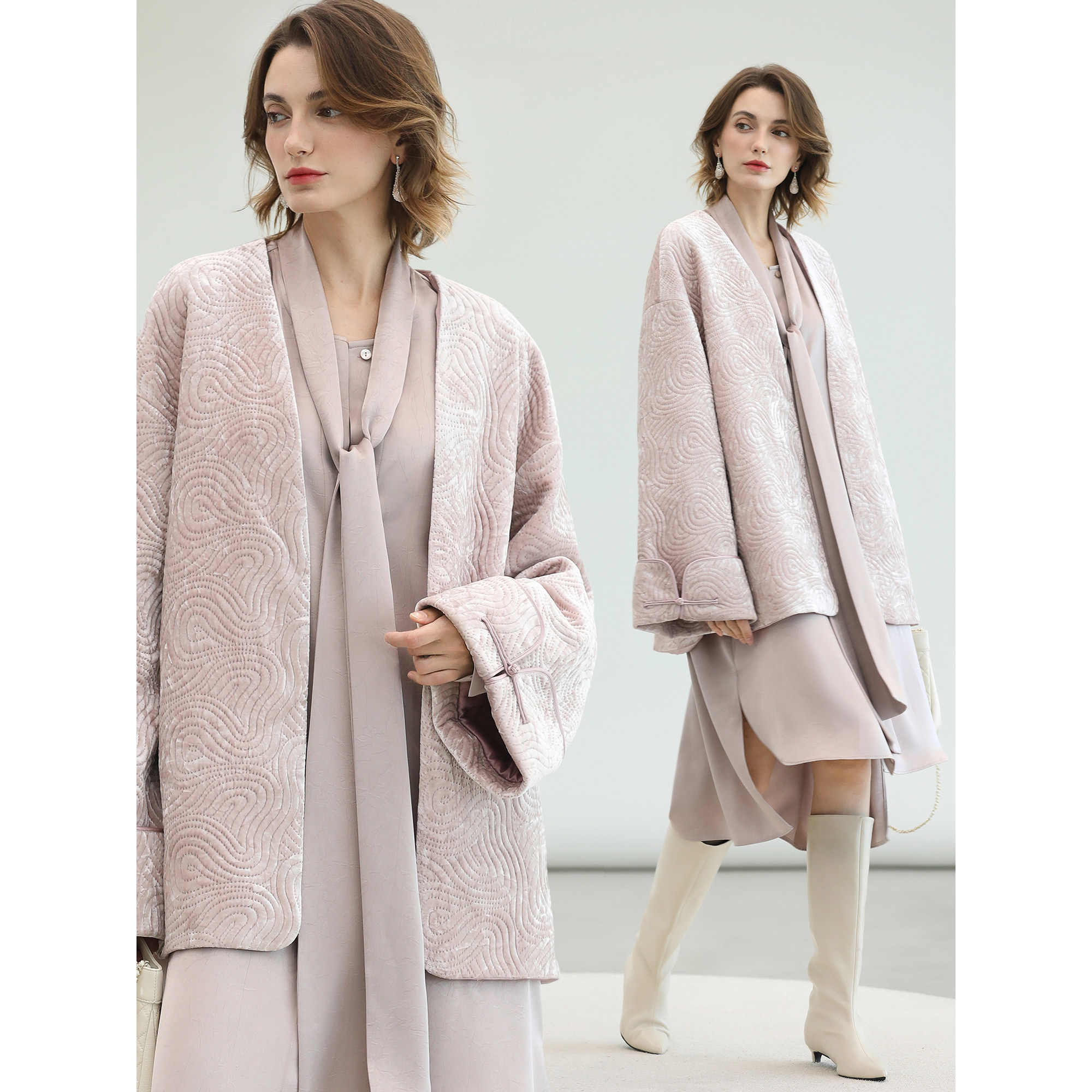 COCOBELLA国风祥云丝绒刺绣棉服外套年轻新中式 上衣MF3036