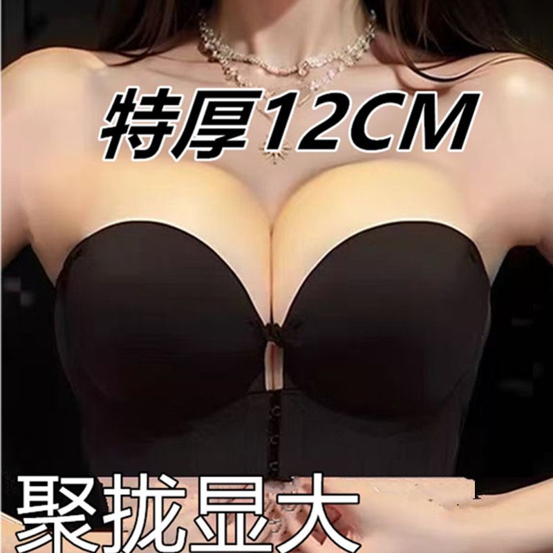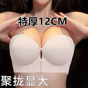 无肩带前扣隐形肤特厚12cm内衣女小胸聚拢防滑吊带裙专用文胸罩