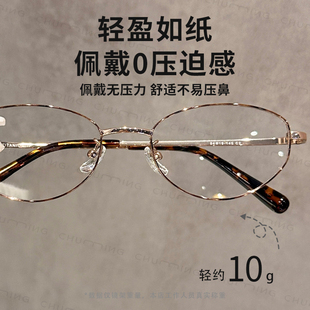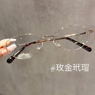 复古玳瑁色猫眼细框眼镜近视女可配有度数方圆脸高智感眼睛架7003