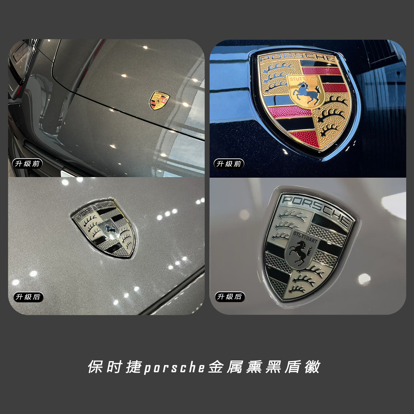 保时捷前车标911卡宴macan帕拉梅拉718黑灰车头引擎机盖标车前标
