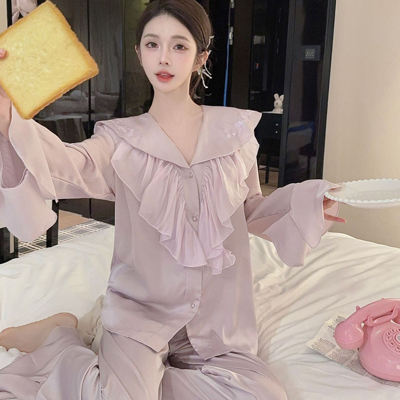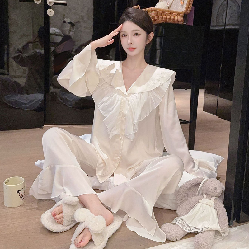 2025新款 宫廷公主风睡衣女春夏高级感荷叶边冰丝家居服可外穿 法式