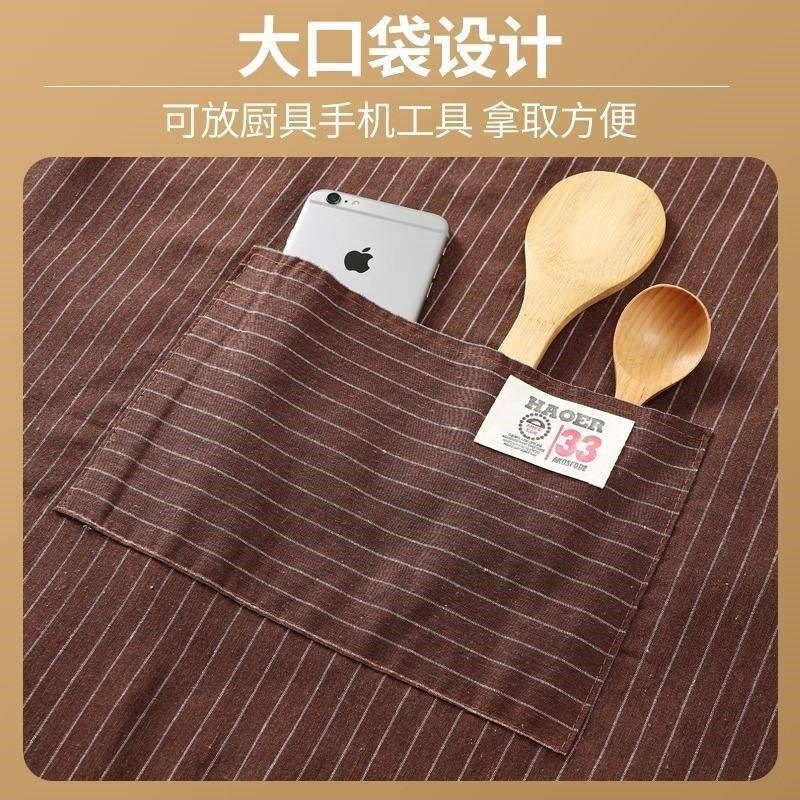 日式 棉麻家用厨房围裙防油成人做饭罩衣工作服咖啡店服文艺围裙