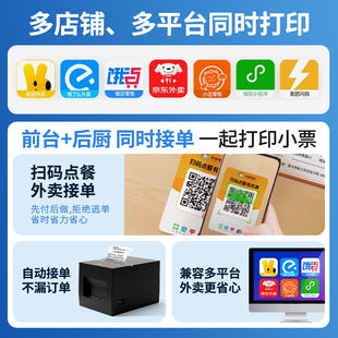 80mm小票打印机 WiFi前台餐饮后厨房出单打印机云热敏网口网线票据便利店美团收银外卖自动切纸接单蓝牙