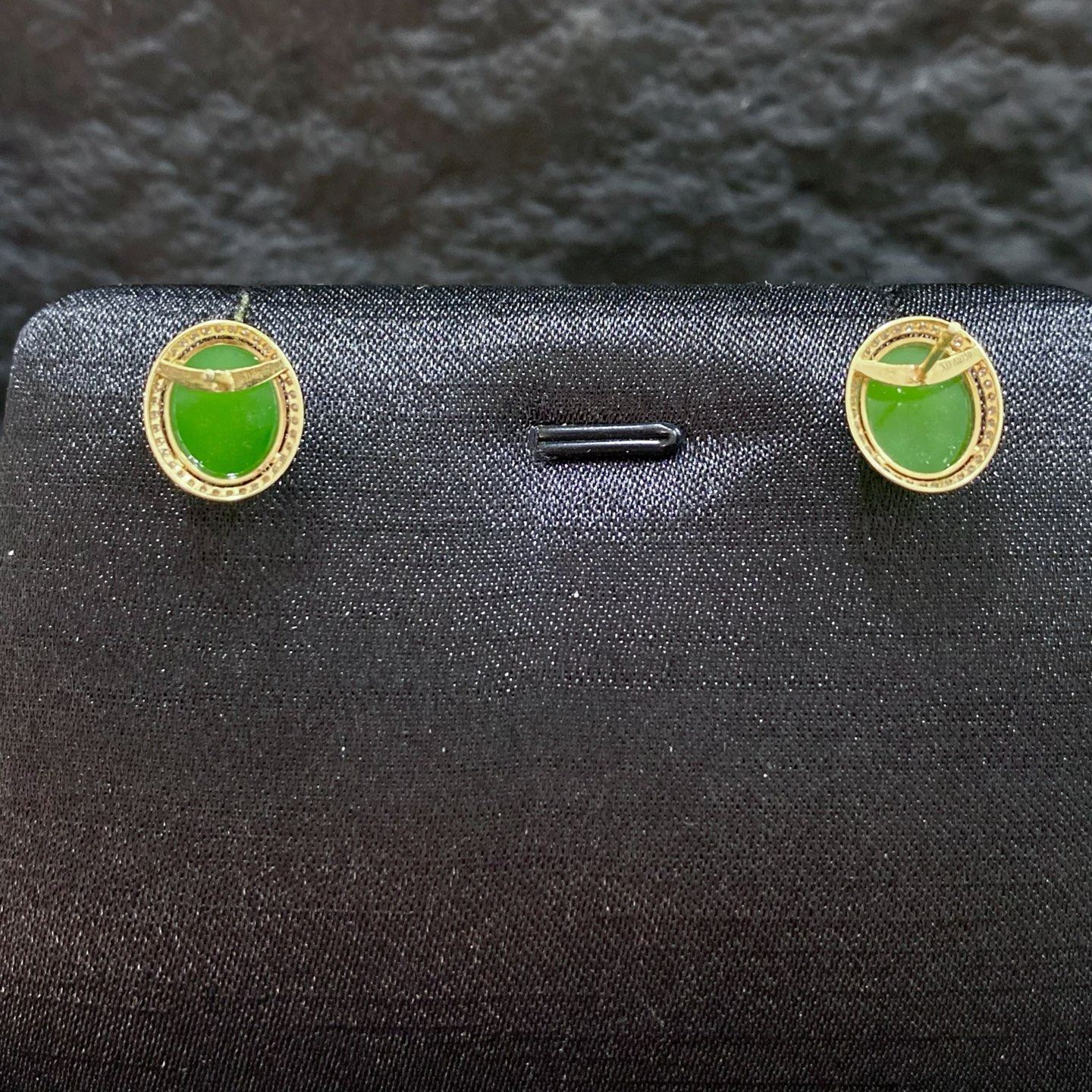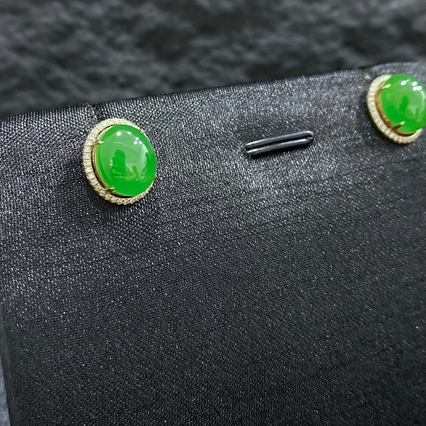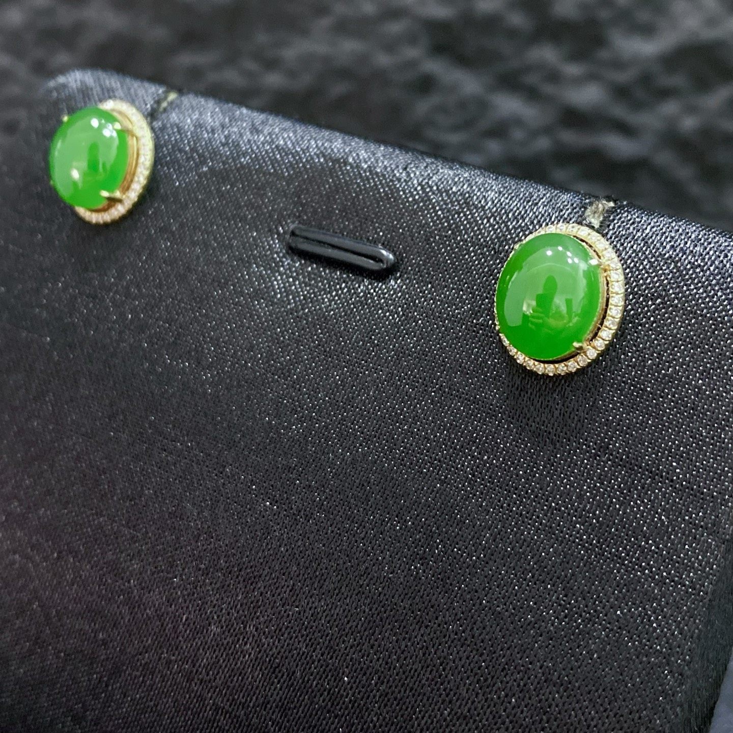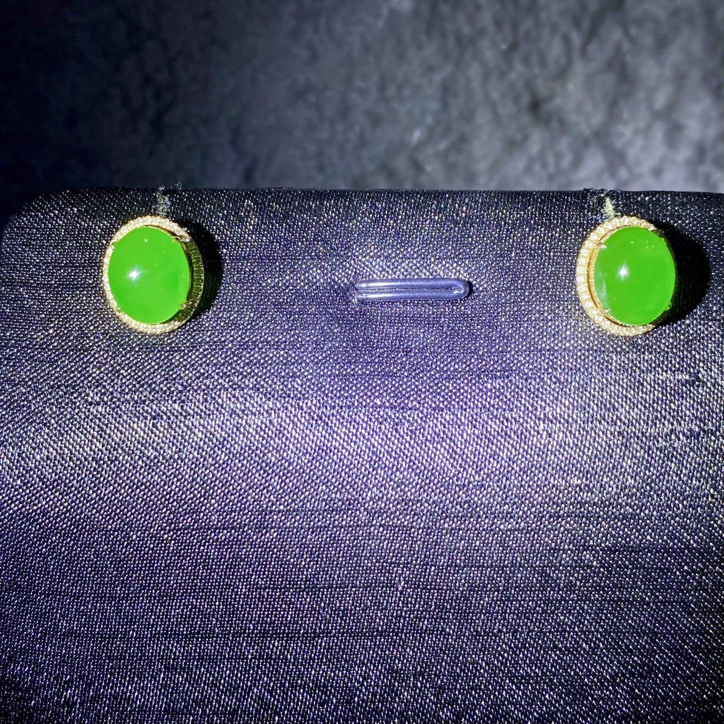 精致时尚 和田碧玉苹果绿蛋面耳钉18k金镶嵌款 式