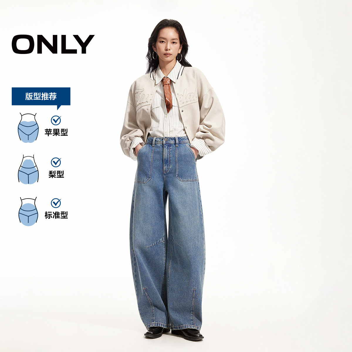弹力高腰宽松阔腿裤 女2025秋冬新款 子 九分弯刀牛仔裤 腿型救星
