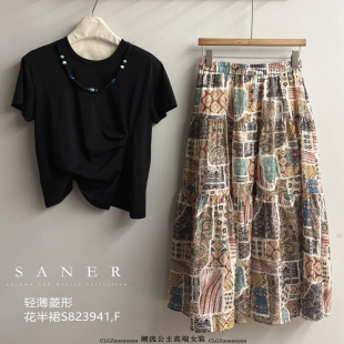 823941韩版 特价 新款 2025夏季 宽松显瘦百搭松紧腰半身裙 SANER女装