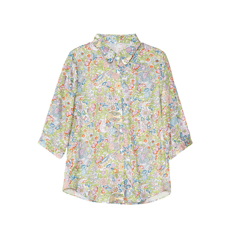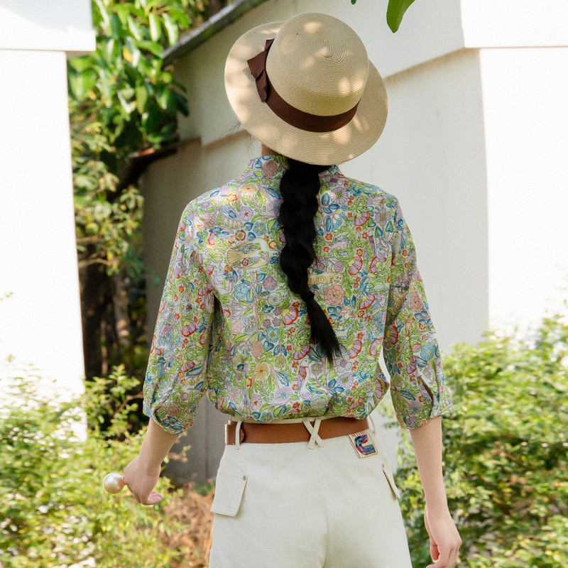 新款 女2025夏季 小碎花清新合体衬衣256MC6282 分袖 谜底100%棉衬衫