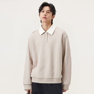 25秋新品 gxg.jeans男装 多色肌理面料撞色休闲翻领卫衣男生上衣