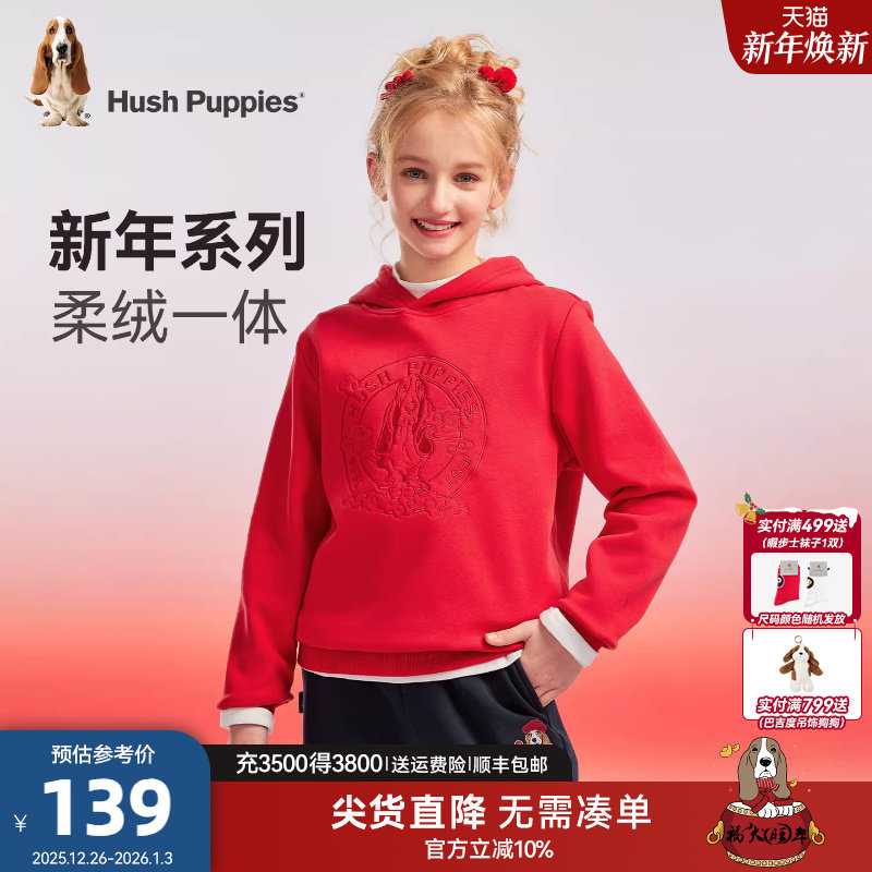 女童帽衫 男童一体绒大童新年装 儿童连帽卫衣25秋冬新品 暇步士童装