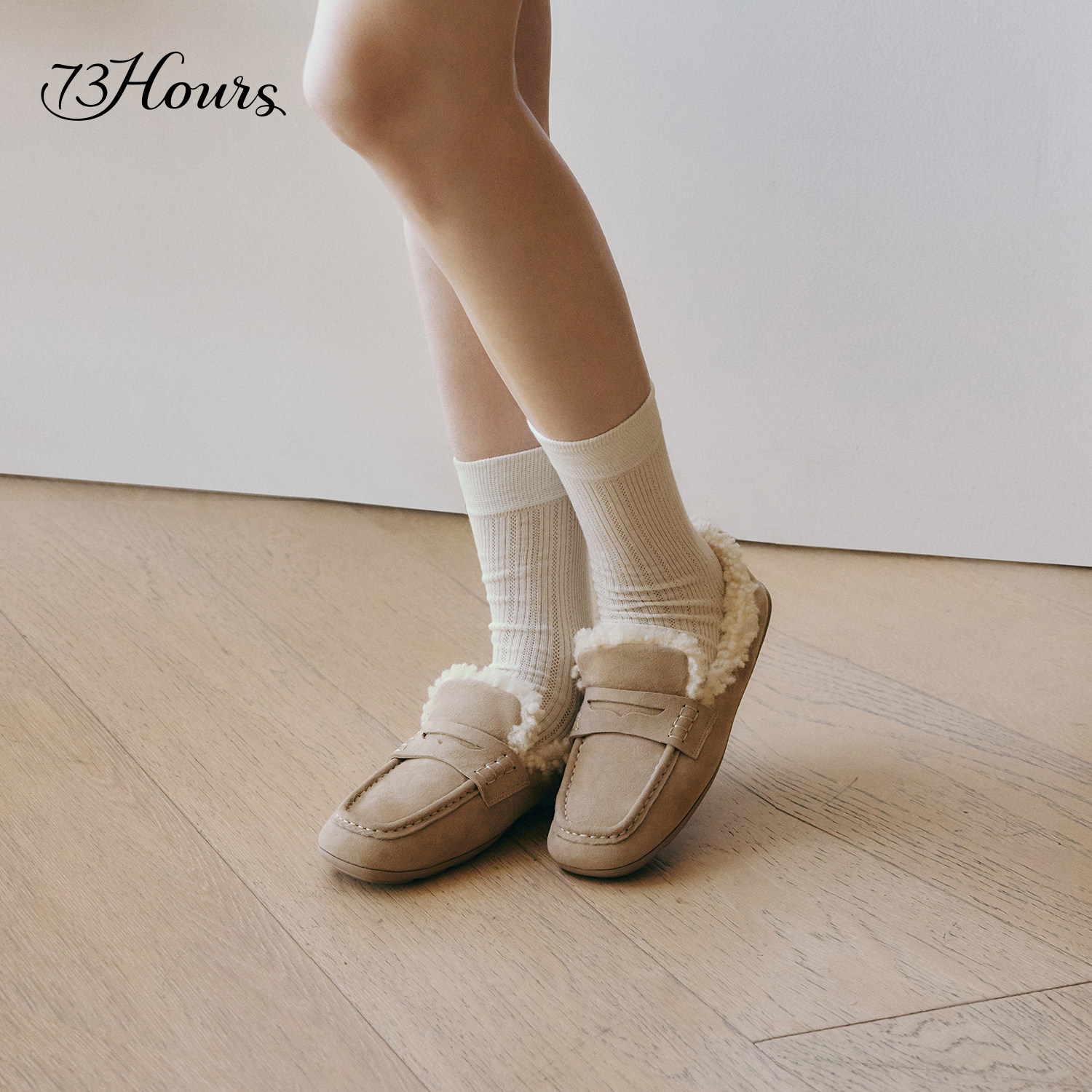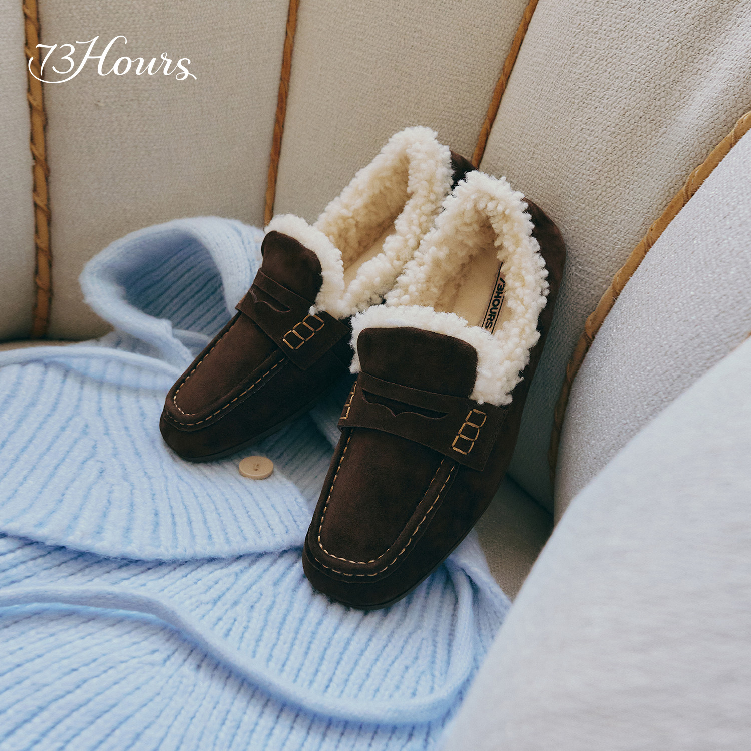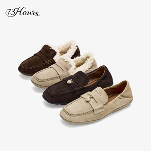 女一脚蹬豆豆鞋 73hours女鞋 老钱风羊皮乐福鞋 新款 Pancake2025秋季